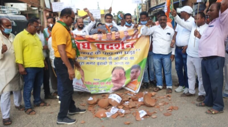 कोडरमा। भारतीय जनता युवा मोर्चा जयनगर एवं परसाबाद मंडल की ओर से प्रखंड स्तरीय जयनगर स्थित पेठियाबागी चौक पर हेमंत सरकार के खिलाफ जोरदार प्रदर्शन करते हुए रोड मार्च निकाला। इस दौरान भाजपाईयों ने हेमंत सरकार के पाप का घड़ा फोड़ने का कार्य किया। जिला महामंत्री चंदन कुमार के नेतृत्व में एवं जयनगर मंडल अध्यक्ष सुनील सिंह एवं परसाबाद मंडल अध्यक्ष विजय यादव की अध्यक्षता में संपन्न हुआ।