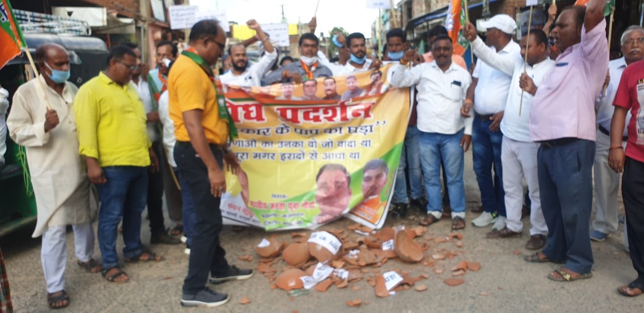 कोडरमा। भारतीय जनता युवा मोर्चा जयनगर एवं परसाबाद मंडल की ओर से प्रखंड स्तरीय जयनगर स्थित पेठियाबागी चौक पर हेमंत सरकार के खिलाफ जोरदार प्रदर्शन करते हुए रोड मार्च निकाला। इस दौरान भाजपाईयों ने हेमंत सरकार के पाप का घड़ा फोड़ने का कार्य किया। जिला महामंत्री चंदन कुमार के नेतृत्व में एवं जयनगर मंडल अध्यक्ष सुनील सिंह एवं परसाबाद मंडल अध्यक्ष विजय यादव की अध्यक्षता में संपन्न हुआ।