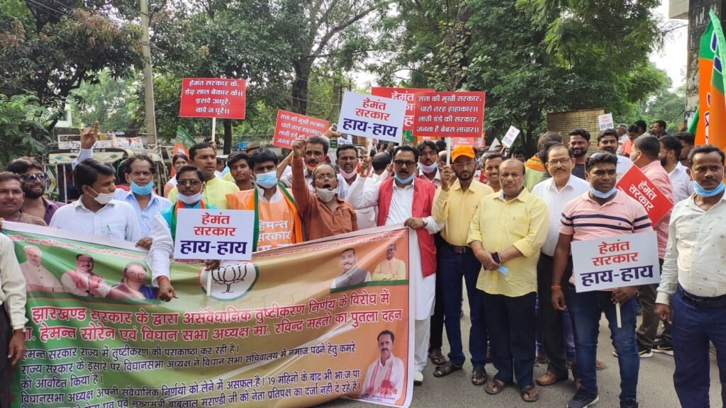 जहां पुतला दहन कार्यक्रम के दौरान भाजपा नेता दिलीप वर्मा ने हेमंत सरकार को बेशर्म सरकार बताते हुए सत्ता में आने के बाद हेमंत सरकार तुष्टिकरण की राजनीति में आंकठ डूबी हुई है। अब यह सरकार इसी तुष्टिकरण की राजनीति अपनाकर ऐसे गलत फैसले ले रही है। इधर विरोध प्रदर्शन में पार्टी के नेता चुन्नूकांत, सांसद प्रतिनिधी दिनेश यादव, दारा हाजरा, पूर्व महापौर सुनील पासवान, एजाज अहमद सोनू, अल्पसंख्यक मोर्चा के नेता जाकिर हुसैन छोटू, इरफान, संदीप डंगाईच, हरमिंदर सिंह बग्गा, संजीत सिंह पप्पू, मनोज मोर्या, ज्योति शर्मा, राजेश जायसवाल, संतोष गुप्ता, महेश राम समेत काफी संख्या में पार्टी के नेता और कार्यकर्ता मौजूद थे।