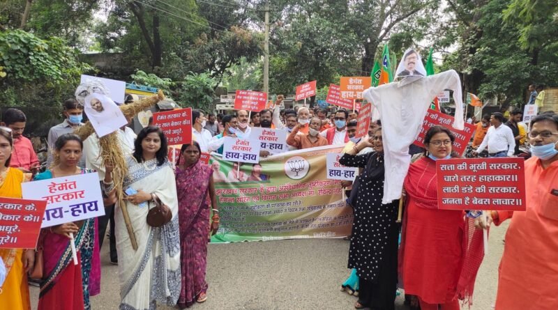 झंडा मैदान से भाजपा का विरोध प्रदर्शन निकला। इस दौरान पार्टी की महिला नेत्री जहां सीएम और विस अध्यक्ष का पुतला लिए चल रही थी। वहीं पार्टी के एक-एक नेता और कार्यकर्ता के हाथों में हेमंत सरकार विरोधी नारों से अंकित तख्तियां थामे थे। तो पार्टी के नेता और कार्यकर्ताओं द्वारा हेमंत सरकार के खिलाफ जमकर नारेबाजी भी कर रहे थे। विरोध प्रदर्शन में काफी संख्या में भाजपाईयों का हुजूम भी शामिल हुआ। झंडा मैदान से निकल कर भाजपा का यह विरोध प्रदर्शन शहर के कचहरी रोड, मकतपुर रोड, काली बाड़ी चाौक होते हुए वापस टावर चाौक पर पहुंचा।