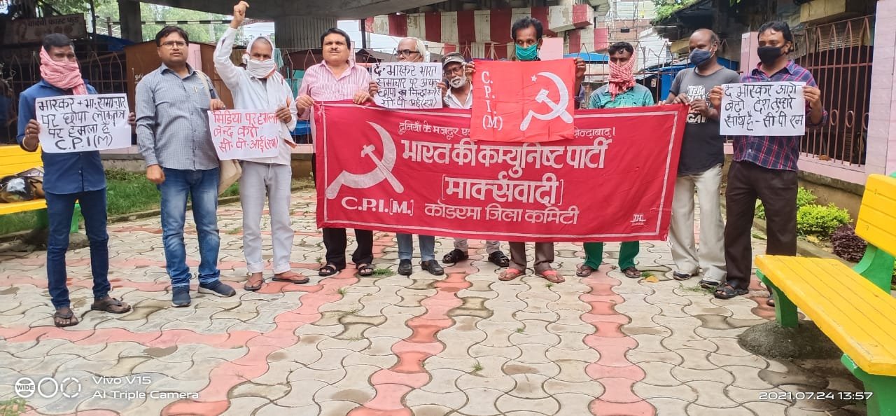 कोडरमा। मीडिया समूह पर आयकर विभाग के छापे की कार्यवाही के खिलाफ शनिवार को मार्क्सवादी कम्युनिस्ट पार्टी ने वीर कुंवर सिंह पार्क में विरोध प्रदर्शन किया। इस दौरान आंदोलनकारियों ने अपने हाथों में तख्ती लिए मिडिया पर हमला बंद करो, असहमति के अधिकार पर हमला नहीं चलेगा, लोकतंत्र की हत्या करना बंद करो आदि अक्रोशपूर्ण नारे लगाए। मौके पर सीपीएम के राज्य सचिवमंडल सदस्य संजय पासवान ने मोदी सरकार के इशारे पर दैनिक भास्कर और भारत समाचार पोर्टल पर आयकर छापे की कार्यवाही की निंदा करते हुए कहा कि मिडिया पर आयकर छापे लोकतांत्रिक मूल्यों के खिलाफ है। केंद्र की भाजपा सरकार असहमति रखने वालों के साथ सरकारी एजेंसियों का दुरूपयोग कर बदला लेने का माध्यम बना रही है। पिछले कुछ महीनों में उक्त मिडिया के द्वारा जनसरोकार से जुड़े मुद्दों पर जिस तरह की रिपोर्टिंग की गई है वह सरकारों के लिए परेशानी का सबब बन गई है, उन्ही रिपोर्टिंग का परिणाम है कि सरकार ने बौखलाहट में बदले की कार्यवाही की है। सीपीएम के जिला सचिव असीम सरकार ने मीडिया को लोकतंत्र का चैथा स्तंभ बताते हुए इस पर हमले को लोकतंत्र पर हमला बताया। उन्होंने कहा कि असहमति का अधिकार लोकतंत्र की आत्मा है। सरकार की इस कार्रवाई के खिलाफ सभी प्रगतिशील लोगों को आगे आना चाहिए।