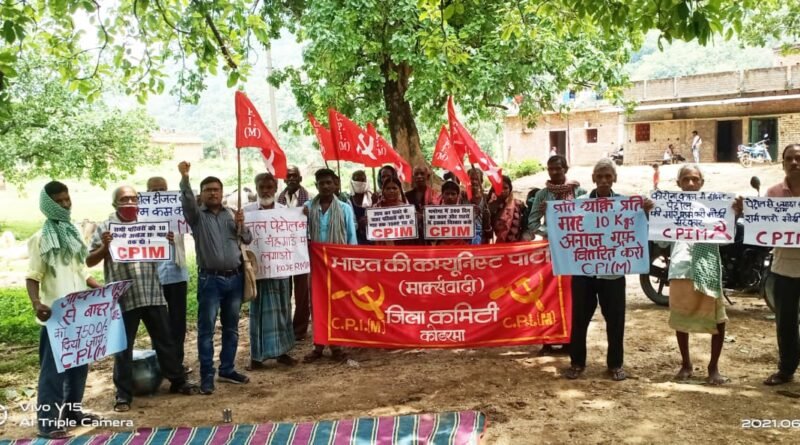 कोडरमा। बढ़ती महंगाई, स्वास्थ्य सेवाओं में संकट, बेरोजगारी, छंटनी, वेतन कटौती, पेट्रोल- डीजल, गैस और सरसो तेल की कीमतों में जबरदस्त बढ़ोतरी के खिलाफ मार्क्सवादी कम्युनिस्ट पार्टी की देशव्यापी विरोध पखवाड़ा गांव चलो अभियान के तहत सोमवार को ग्राम करहरिया, मेघातरी में माकपा कार्यकर्ताओं ने अक्रोशपूर्ण विरोध प्रदर्शन किया। इस दौरान माकपा कार्यकर्ताओं ने बढ़ती महंगाई पर रोक लगाओ, पेट्रोल डीजल रसोई गैस मे भारी मूल्य वृद्धि वापस लो, वाह रे मोदी तेरा खेल 200 रुपये सरसों तेल, मोदी सरकार हाय हाय आदि नारे लगाए। माकपा कार्यकर्ताओं ने सरकार से सरकार पेट्रोल-डीजल व गैस के बढ़े दाम वापस लेने, बढ़ती महंगाई पर रोक, खाद्य पदार्थों की बढ़ी कीमतें कम करने, बिना राशन कार्ड वाले जरूरतमंद को मुफ्त राशन देने, गैर आयकर दाता सभी परिवारों को 75 सौ रूपए प्रति माह आर्थिक सहायता, राशन में दाल, चीनी, तेल आदि सभी आवश्यक चीजें शामिल करने, सभी को राशन किट देने, कोरोना से हुई मौत पर परिवारों को चार लाख मुआवजा देने और ग्रामीण स्वास्थ्य सेवाओं को बेहतर करने की मांग की।