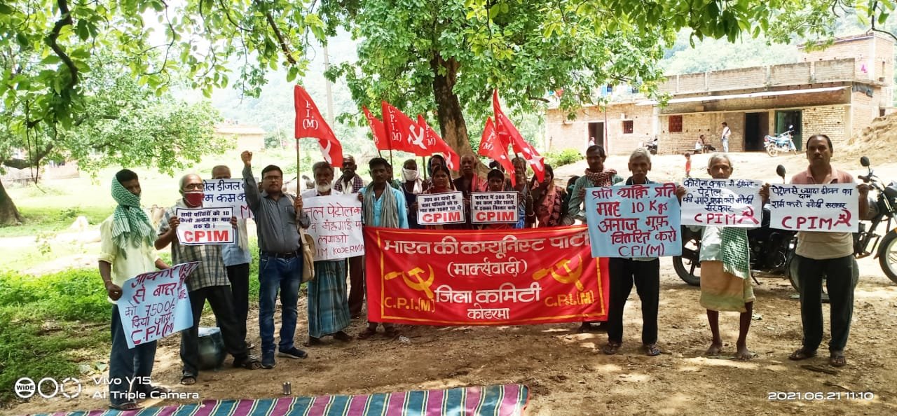 कोडरमा। बढ़ती महंगाई, स्वास्थ्य सेवाओं में संकट, बेरोजगारी, छंटनी, वेतन कटौती, पेट्रोल- डीजल, गैस और सरसो तेल की कीमतों में जबरदस्त बढ़ोतरी के खिलाफ मार्क्सवादी कम्युनिस्ट पार्टी की देशव्यापी विरोध पखवाड़ा गांव चलो अभियान के तहत सोमवार को ग्राम करहरिया, मेघातरी में माकपा कार्यकर्ताओं ने अक्रोशपूर्ण विरोध प्रदर्शन किया। इस दौरान माकपा कार्यकर्ताओं ने बढ़ती महंगाई पर रोक लगाओ, पेट्रोल डीजल रसोई गैस मे भारी मूल्य वृद्धि वापस लो, वाह रे मोदी तेरा खेल 200 रुपये सरसों तेल, मोदी सरकार हाय हाय आदि नारे लगाए। माकपा कार्यकर्ताओं ने सरकार से सरकार पेट्रोल-डीजल व गैस के बढ़े दाम वापस लेने, बढ़ती महंगाई पर रोक, खाद्य पदार्थों की बढ़ी कीमतें कम करने, बिना राशन कार्ड वाले जरूरतमंद को मुफ्त राशन देने, गैर आयकर दाता सभी परिवारों को 75 सौ रूपए प्रति माह आर्थिक सहायता, राशन में दाल, चीनी, तेल आदि सभी आवश्यक चीजें शामिल करने, सभी को राशन किट देने, कोरोना से हुई मौत पर परिवारों को चार लाख मुआवजा देने और ग्रामीण स्वास्थ्य सेवाओं को बेहतर करने की मांग की।